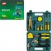 Він містить викрутки для монтажу/демонтажу нарізних з'єднань, зокрема й дрібних, розвідний ключ для болтів і гайок, ніж для різання щільних матеріалів, рулетку для проведення замірів, молоток, плоскогубці, шестигранники та тестер напруги. Переваги: надійність і міцність — всі деталі набору зроблені з інструментальної сталі, робочі частини пройшли загартування.